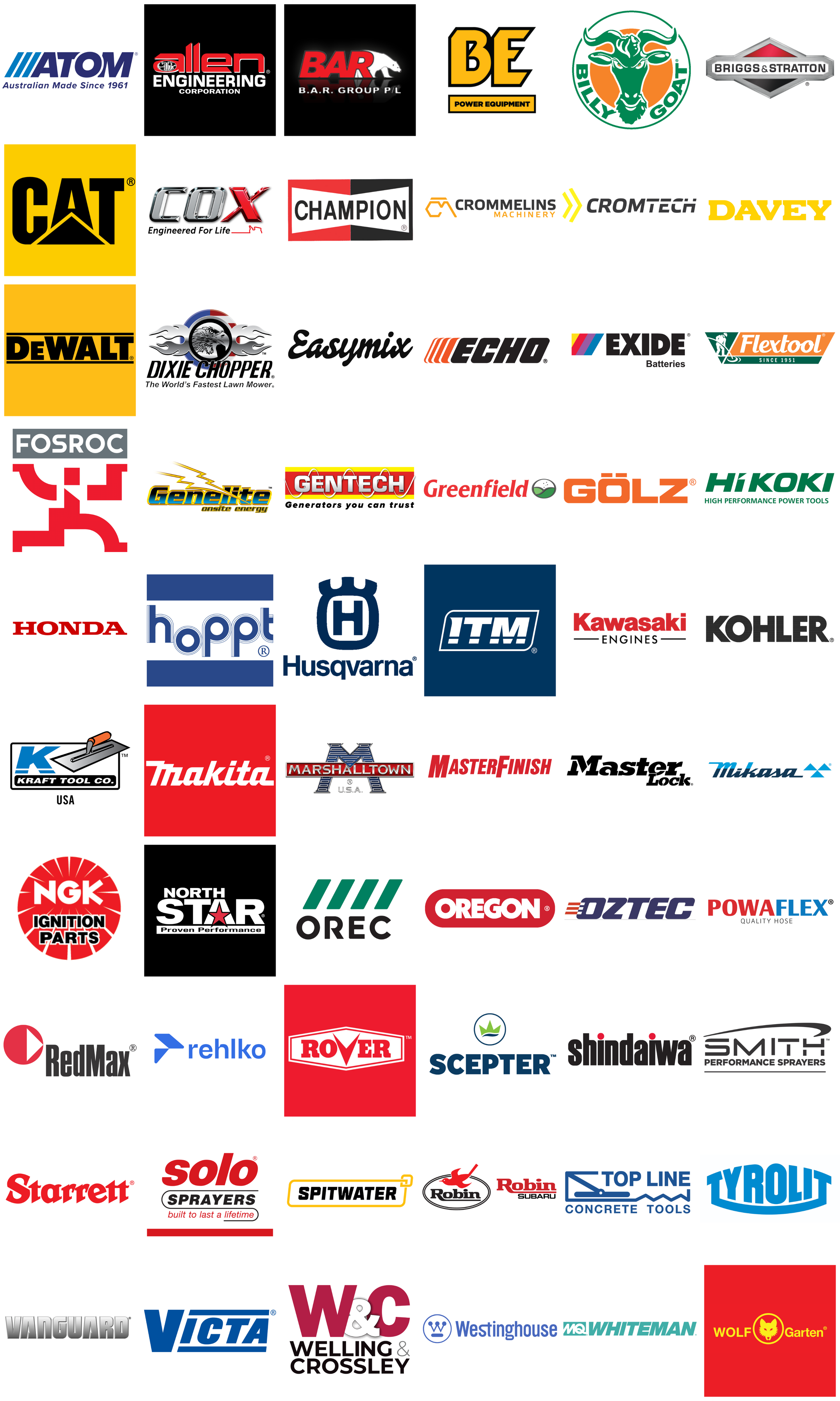 We provide a large variety of Brands for choice, with an extensive range of Construction Machinery and Equipment such as Concrete Cutters, Trowels, Generators, Pumps, Vibrators and Engines. We also provide the market with Lawn Mowers, Ride On Mowers, Power Tools, Hand Tools, Garden Tools, Safety Equipment, Battery Powered Equipment and Outdoor Power Equipment such as Brushcutters, Blowers and Chainsaws.